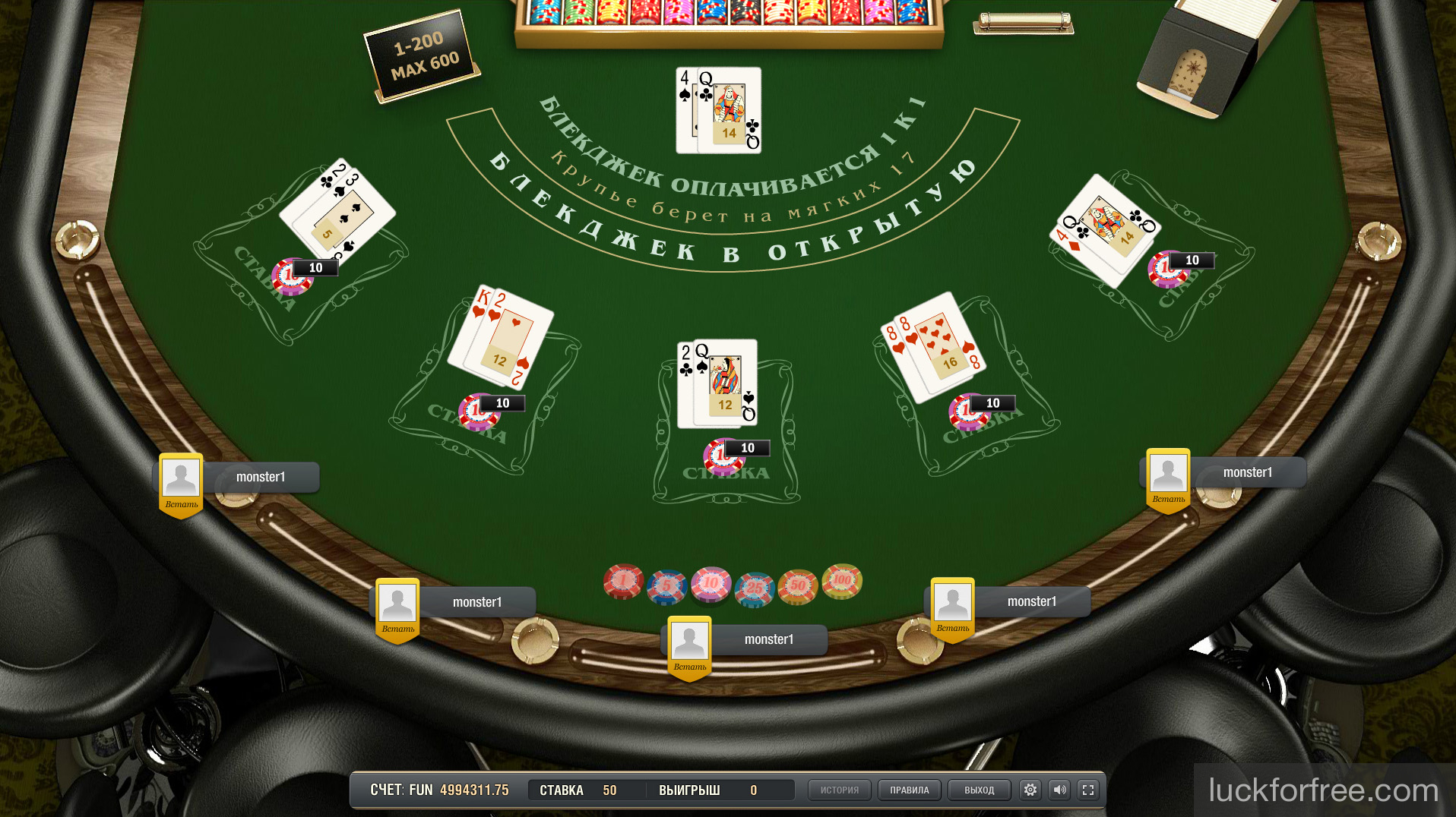 В виртуальный «мультиплеерный блэкджек» можно играть одновременно максимум пяти игрокам. При этом число зрителей не ограничено.