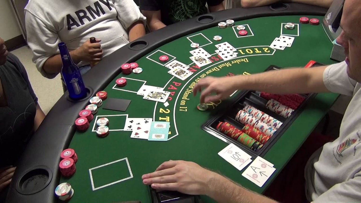 Правила игры для дилера вовсе не зависят от выпавших комбинаций клиента онлайн-казино. По правилам блэкджека, крупье может брать карты до шестнадцати очков, и уже останавливается либо на «жестких» семнадцати, либо больше семнадцати.