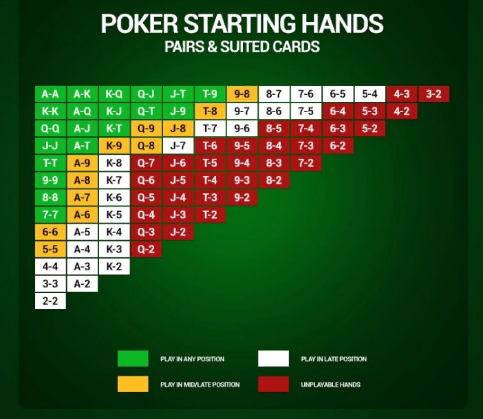 Почитайте предыдущие статьи, посвященные стартовым картам, а также помните основное правило, что наилучшая пара это комбинация с наивысшими картами, такими как тузы, короли, дамы, валеты. Также силу за покерным столом имеют одномастные пары с картами по  стоимости не ниже восьмерки.