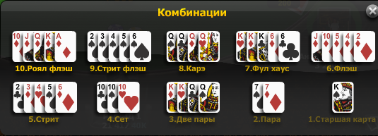 Это такой набор карт, который нужно собрать в покере, чтобы получить выигрыш.