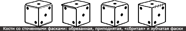 Также они могут использовать кости, которые имеют немного выпуклые или вогнутые грани. Такие кости лягут исключительно на ровные грани, а на них находятся нужные для шулера цифры.