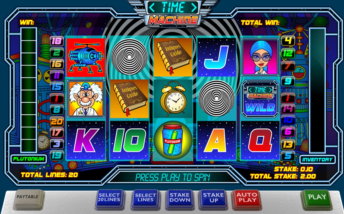 Красочный дизайн является не единственным отличием игрового аппарата Time Machine. Ко всему, он еще очень функционален, поскольку в слоте присутствуют дополнительные бонусные символы и игры, которые стоят наряду с двадцатью игровыми линиями, гарантирующими выигрыш участнику.