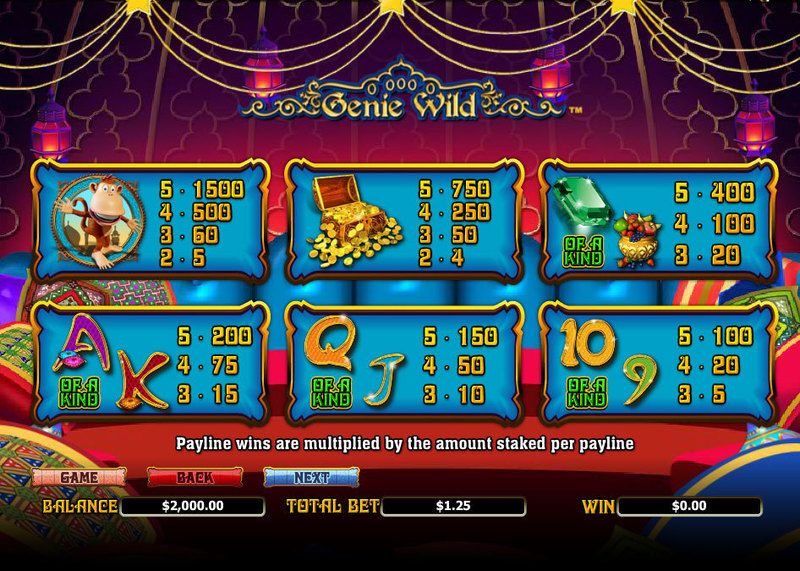 Игровой автомат Genie Wild очень красочный, играя на нем, гемблер сразу же ощущает прилив сил и улучшение настроения