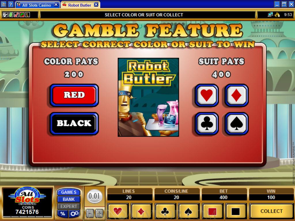 Игроку необходимо выбрать нужный предмет из ряда предложенных. Этот предмет очень нужен роботу дворецкому. Если удача будет к вам благосклонна, то ваш выигрыш увеличится в 100 раз!