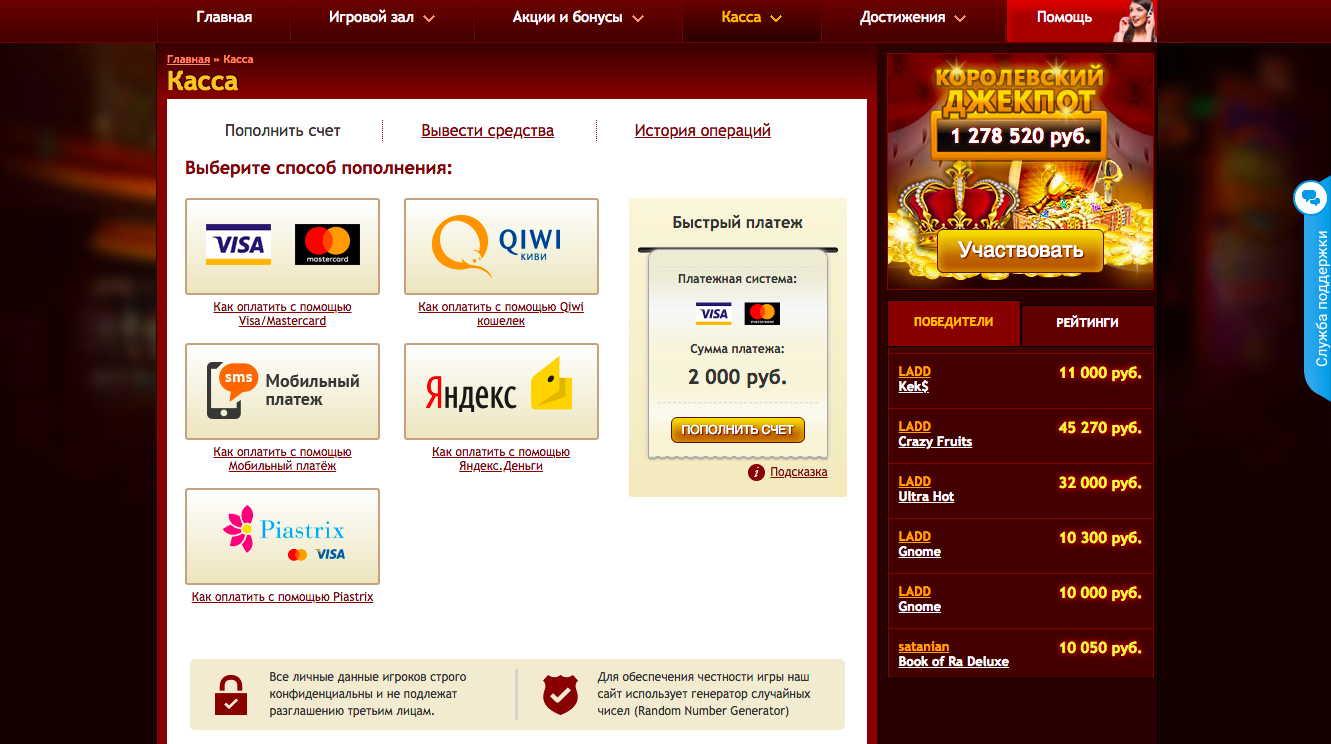 Каждый уважающий себя и своих посетителей, владелец казино, поместит необходимые реквизиты по умолчанию. Безусловно, анонимно игроки не могут пополнить свой счет, для этого потребуется заполнить соответствующие поля, указав персональные данные. Но не стоит переживать раньше времени, большинство сервисов довольствуется лишь уже полученными ранее данными при регистрации личного счета.