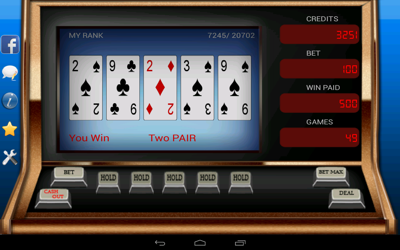 | В "Jacks or Better" | 1 раз в 40 391 раздачу |
