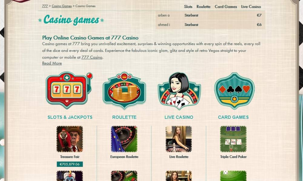 На момент написания обзора ассортимент игр 777 состоял из почти трехсот моделей разных жанров и брендов. Они разбиты на четыре основных группы: