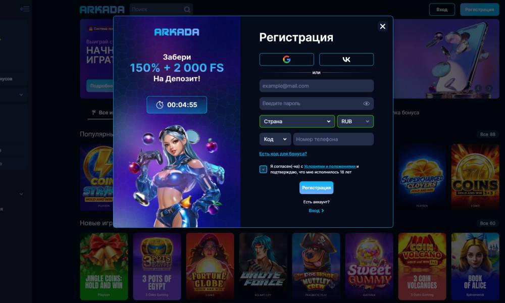 Процесс регистрации в Arkada Casino прост и занимает всего несколько минут. Для создания учетной записи необходимо: