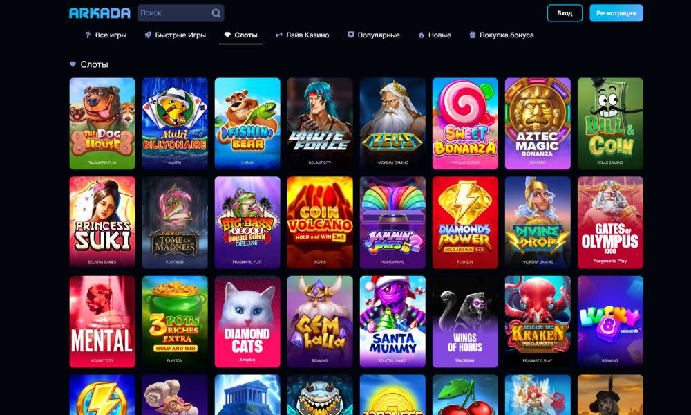 Игровые автоматы (слоты) в Arkada Casino – это один из главных акцентов платформы. Свыше 6000 слотов предоставляют широкий выбор тематик, механик и уровней ставок, что делает их идеальным выбором как для новичков, так и для опытных игроков.