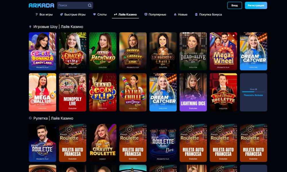Лайв-казино Arkada — это место, где игроки могут насладиться атмосферой реального казино. Здесь вас ждут профессиональные крупье, качественный видеостриминг и широкий выбор игр.