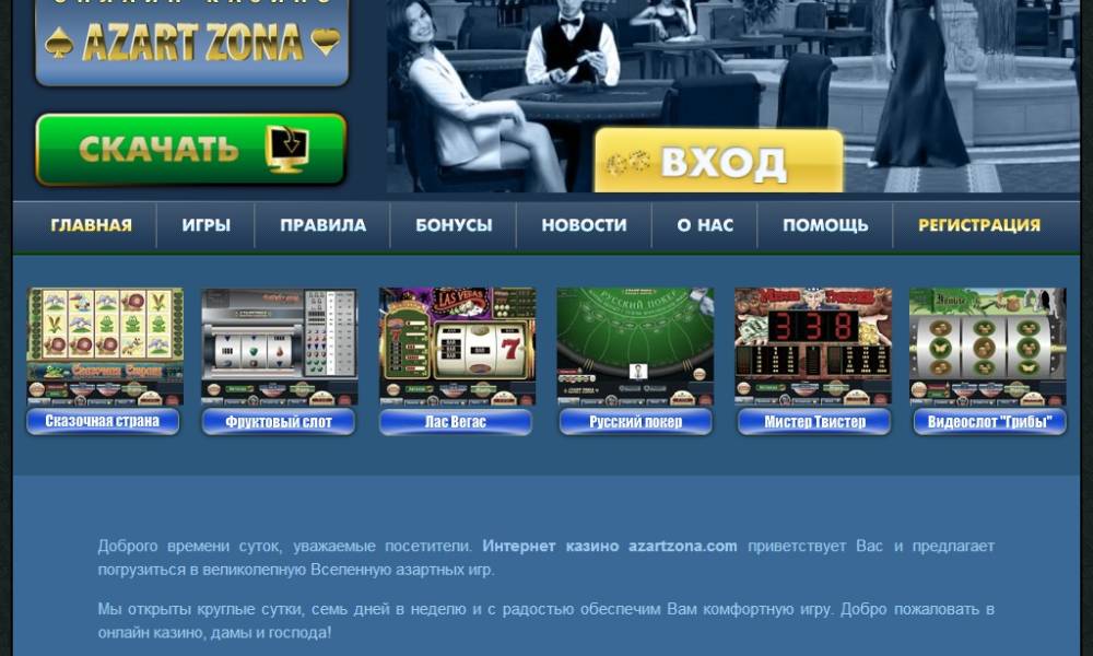 Название Azart Zona говорит само за себя. Игроки, попавшие в него, попадут в настоящее азартное заведение, где каждую минуты кто-то выигрывает и проигрывает. Чтобы испытать удачу на прочность, достаточно пройти простую процедуру регистрации и начать наслаждаться игрой.