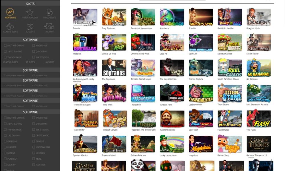 Казино предлагает онлайн-игры более чем десяти известных брендов, в числе которых Net Entertainment, Microgaming, Playtech, Cryptologic, NextGen Gaming, Genesis Gaming и другие. Все они запускаются во флэш-версиях непосредственно в браузере, что избавляет клиентов от необходимости устанавливать дополнительное программное обеспечение на компьютер.