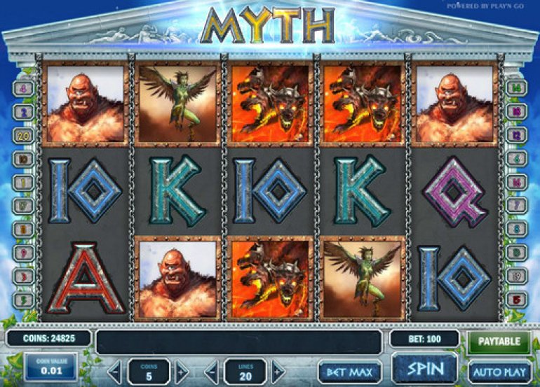 - В автомате Myth («Миф») Wild удваивает выигрыши в обычных запусках. Во время призовых спинов все выплаты производятся по утроенным коэффициентам, а если в них участвует Wild, то множитель увеличивается до х6.