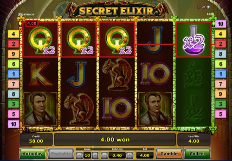 - Необычным способом дополнительные множители выплат по комбинациям реализованы в бесплатном игровом автомате Secret Elixir («Тайный эликсир») от компании Novomatic. Здесь на пятом барабане отсутствуют обычные или специальные символы. Вместо них изображены коэффициенты х2, х3 и х5. На линии, по которой образовалась комбинация, есть один из этих множителей, на него будет увеличена сумма выигрыша. Стоит добавить, что во время бесплатных запусков на пятом барабане также появляются коэффициенты х10 и х20.
