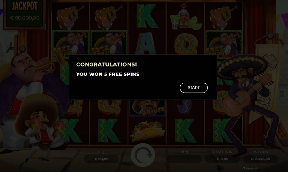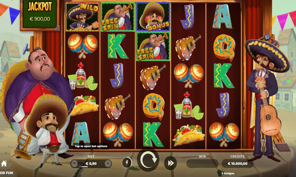 3 Amigos Jackpot — это онлайн-слот с игровой сеткой 5х5 и 30 фиксированными линиями выплат. Диапазон ставок большой — 0.06-90 евро, а максимальный приз достигает х10000. Пользователи могут выигрывать джекпоты, вращая колесо удачи. В игре принимают участие 5 старших и 3 младших символа. Они составляют комбинации слева направо подряд с первого барабана на линиях. Также есть три специальных знака и фриспины.