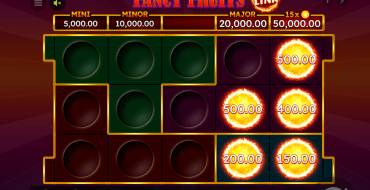 Во 7 Fancy Fruits Flaming Link игра проходит на маленьком поле 5х3 с участием 9 видов символов. 7 из них простые, еще 2 — специальные. Есть 2 вида риск-раунда. Гемблер может сам выбрать, какой из них запустить (или не запускать их вообще). Есть 4 джекпота. Выплаты формируются по 5 фиксированным линиям, которые работают только слева направо и должны включать минимум 3 символа подряд. Ставку можно сделать в размере от 0.10 до 100.00, а выиграть — не более х500. Максимальный выигрыш в 7 Fancy Fruits Flaming Link можно получить 2 способами. Первый — поймать 5 самых старших символов (семерки) на любой из линий. Второй — поймать Ultra-джекпот в раунде Flaming Link.