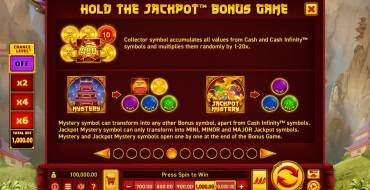• Cash Infinity Symbols – красные символы монет, которые остаются на экране до начала бонусного раунда и увеличивают шансы на его активацию.