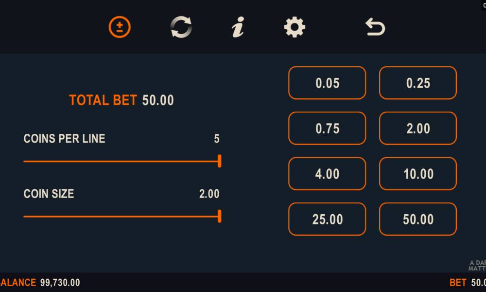 На главном экране почти нет надписей, поэтому можно без проблем играть на слоте «Тёмная материя» даже без перевода на родной язык.