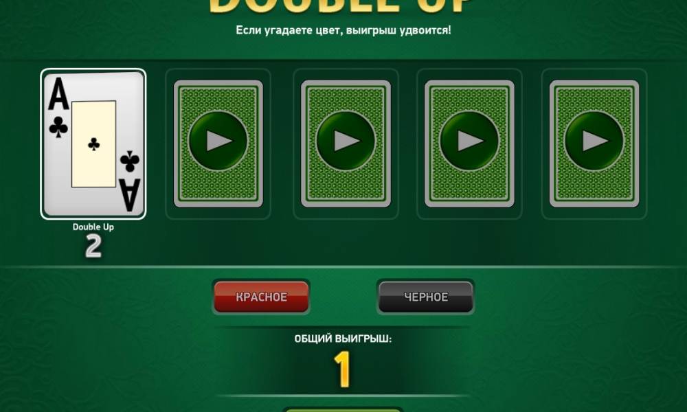 Общий выигрыш, начисленный за раздачу, можно сразу забрать путем его перевода на основной счет. Также можно попытаться увеличить сумму в игре по шансам. Здесь нужно угадывать цвет карты, которая лежит рубашкой вверх. Правильный ответ означает, что выплата удвоится. Если же игрок ошибается, он лишается поставленных на кон денег. В одном подходе можно действовать до пяти раз подряд.