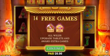 Также на барабанах может остановиться специальный знак саркофага на фиолетовом фоне, который принесет 2, 6 или 10 бесплатных оборотов. Все знаки Wild способны расширяться на весь барабан, подменять другие символы и изменять их на более дорогие, как показано в строке над барабанами. Всего доступно пять уровней апгрейдов, и именно благодаря им количество и сумма призовых комбинаций быстро возрастают.