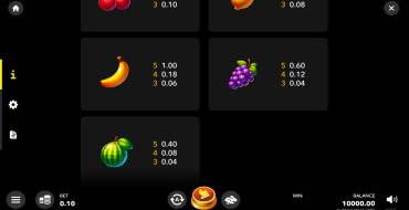 Дизайн слота простой, но оформлен в ярких цветах. Есть ненавязчивая анимация. Интерфейс стилизован под старые механические игровые автоматы. Набор кнопок очень маленький, все они находятся внизу. Справа находится баланс, включение-выключение звука. Там же отображается полученная только что выплата. Спины запускаются по центру. Есть запуск вручную и автоспин с широкими настройками для остановки. Барабаны можно ускорить или замедлить кнопкой рядом с ручным запуском. Выбор ставки и меню находятся слева. В меню есть 3 вкладки с таблицей выплат, правилами и настройками. В настройках можно включить полноэкранный режим, включать-выключать звук, и включить или выключить предложение риск-раунда. Чтобы правильно начать игру: