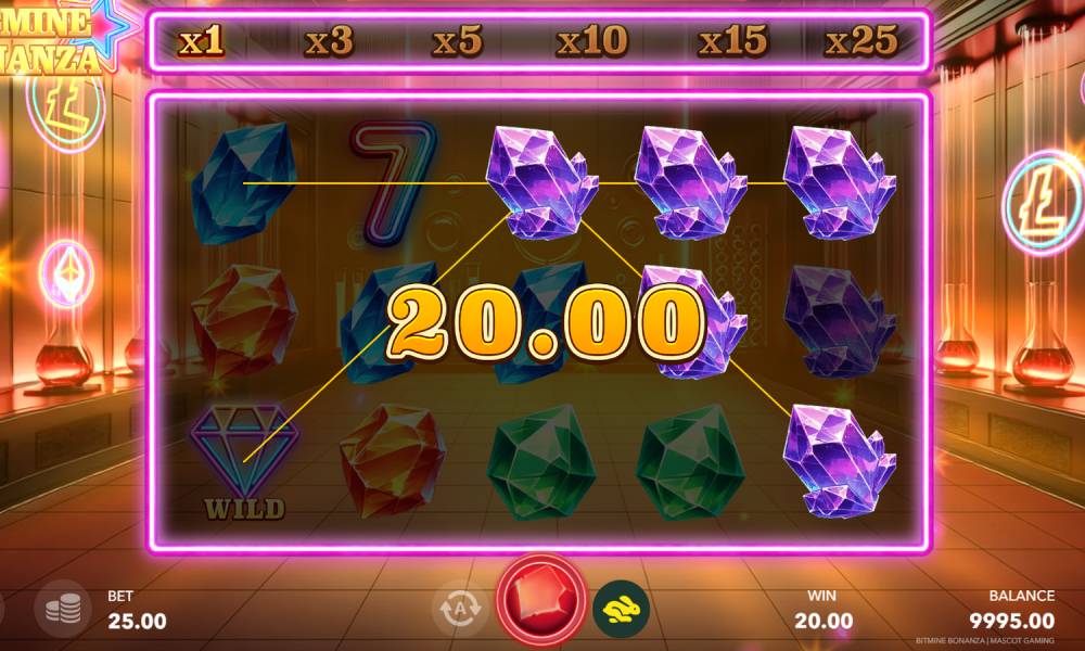 В середине февраля 2025 провайдер Mascot Gaming выпустил слот под названием Bitmine Bonanza. Он посвящен криптовалютам — популярной теме, которая почему-то пока что не очень часто используется гемблинг-операторами. У слота небольшое поле и всего 5 линий выплат, но они работают в обе стороны. Есть риск-раунд. За серию вращений без выплат увеличивается дополнительный множитель, который может дойти до х25.