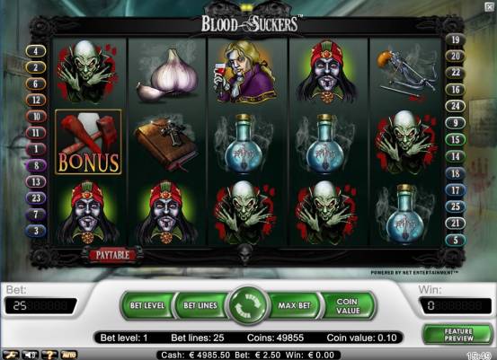 Поэтому появление новых автоматов о вампирах выглядит вполне закономерным. Вот и компания Net Entertainment радует игроков слотом Blood Suckers («Кровопийцы»), в котором вам выпадет шанс поохотиться на этих жутких созданий.