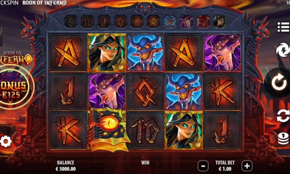 Шведский провайдер Quickspin предлагает пощекотать нервы, играя в онлайн-слот Book of Inferno. Охота на демонов открыта! Помогите бесстрашной воительнице Анне и вместе с ней поучаствуйте в эпохальной битве с силами зла, используя любые доступные средства и зарабатывая при этом неплохие деньги. В игре присутствуют бесплатные вращения, расширяющиеся символы, множители разной величины, а максимальный выигрыш достигает х5 846 к ставке.