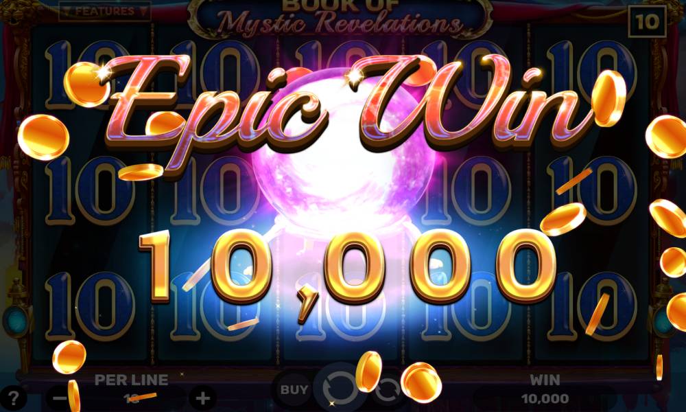 Все элементы интерфейса в Book Of Mystic Revelations собраны под крупным игровым полем. Они разделены на 2 ряда: сначала идут кнопки управления (таблица выплат, изменение ставки, Buy Bonus, ручной спин и автоспин) и окно с размером последнего выигрыша. Ниже расположены меню, кнопка для регулировки звука и кнопка для включения турбо-режима. Баланс отображается справа. Игроку, который решил играть на деньги, мы советуем: