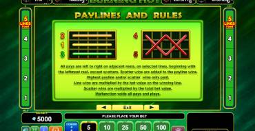 Игровой аппарат Burning Hot от провайдера EGT имеет классическое игровое поле вида 3х5. Выплаты производятся по 5 фиксированным линиям.