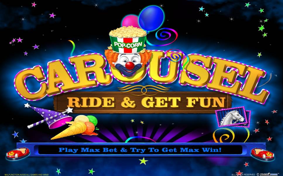 В онлайн-слоте Carousel игрока встречает непривычное игровое поле. 1 и 5-й барабаны имеют 4 ячейки в высоту, остальные 5. При этом количество линий зафиксировано на 100 штуках. Выигрыши за комбинации начисляются также оригинально. Символы WIld и самый старший знак карусели требуют от 2 одинаковых подряд, остальных уже понадобится три штуки. Если все символы должны быть расположены от левого барабана к правому, то для знака Scatter это правило не действует, он оплачивается по системе Pay Anywhere. В слоте присутствуют фриспины, причем бонусы в них представлены в виде доворотов барабана до его полного покрытия символами WIld. Ставка выбирается из значений от 0.5 до 50 евро.