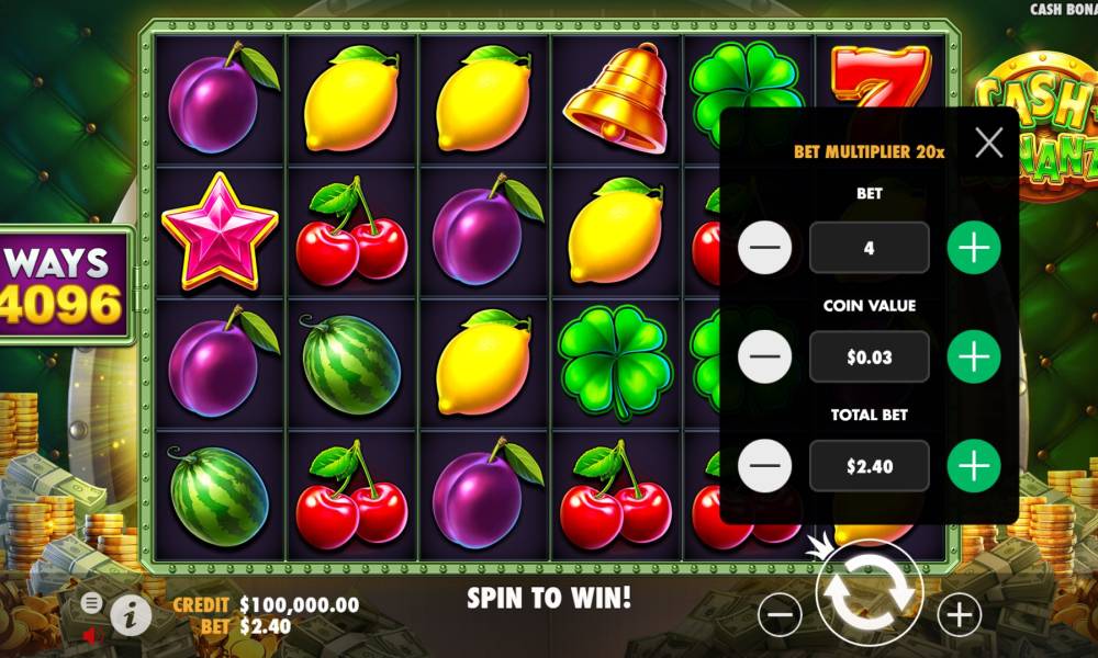 Игровой автомат Cash Bonanza от провайдера Pragmatic Play имеет стандартное игровое поле вида 6х4. Выплаты производятся по 4096 линиям.
