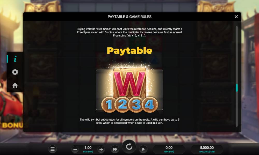 Стандартный RTP для обычных вращений 96.40%. Во фриспинах он чуть выше: 96.48%. А в покупных Volatile Free Spins отдача будет еще лучше: 96.57%.