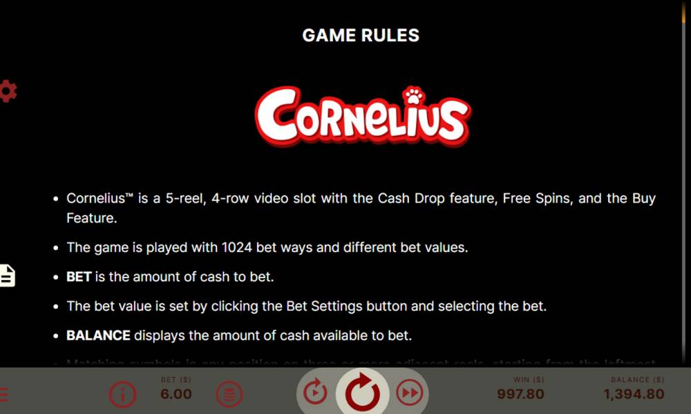 Толстый кот по имени Cornelius очень любит поесть. Именно он и является главным героем слота, который разработчики из NetEnt так и назвали в его честь. Слот выпущен в середине 2022. Гемблеру предстоит побороться за выплату в размере до х1051 на небольшом, но очень красиво оформленном поле. Помогать в этом игроку будут несколько необычных знаков и 2 похожих фриспин-раунда с респинами и неплохими шансами унести крупный куш.