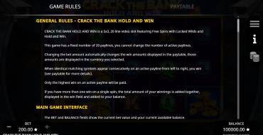Судя по характеристикам, Crack the Bank Hold and Win лучше подходит для длительных сессий. У него действуют такие параметры: