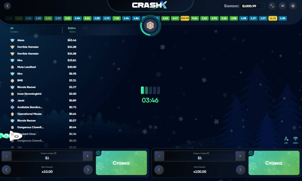 Цель игры в Crash X - вовремя забрать выплату, постаравшись получить как можно более крупный выигрыш.