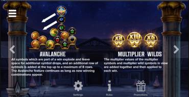 Игровая область позволяет формировать комбинации слева направо, даже если символы не расположены в одних и тех же рядах. Вы формируете эти выигрыши, когда это возможно, затем срабатывает Лавина и заменяет выигрышные символы новыми. Также добавляется дополнительный ряд, а это увеличивает количество способов выиграть. Все возвращается к исходному размеру в конце вращения и лавин.