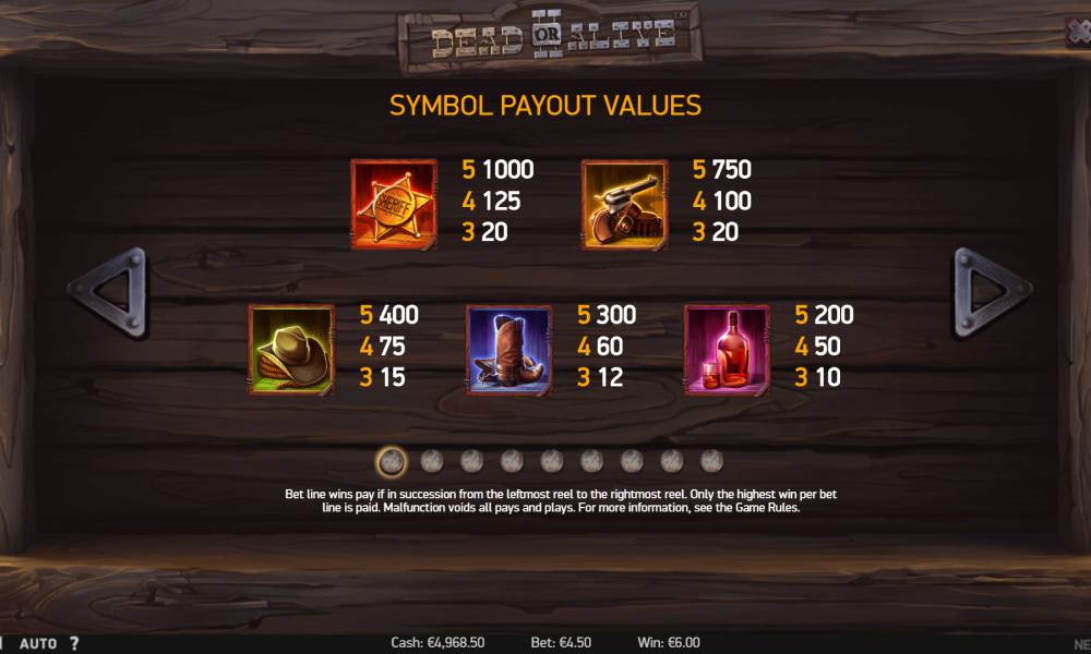 Игры на удвоение нет. Об исключениях из правил, типах символов и бонусах рассказывается далее в обзоре Dead or Alive 2 NetEnt.