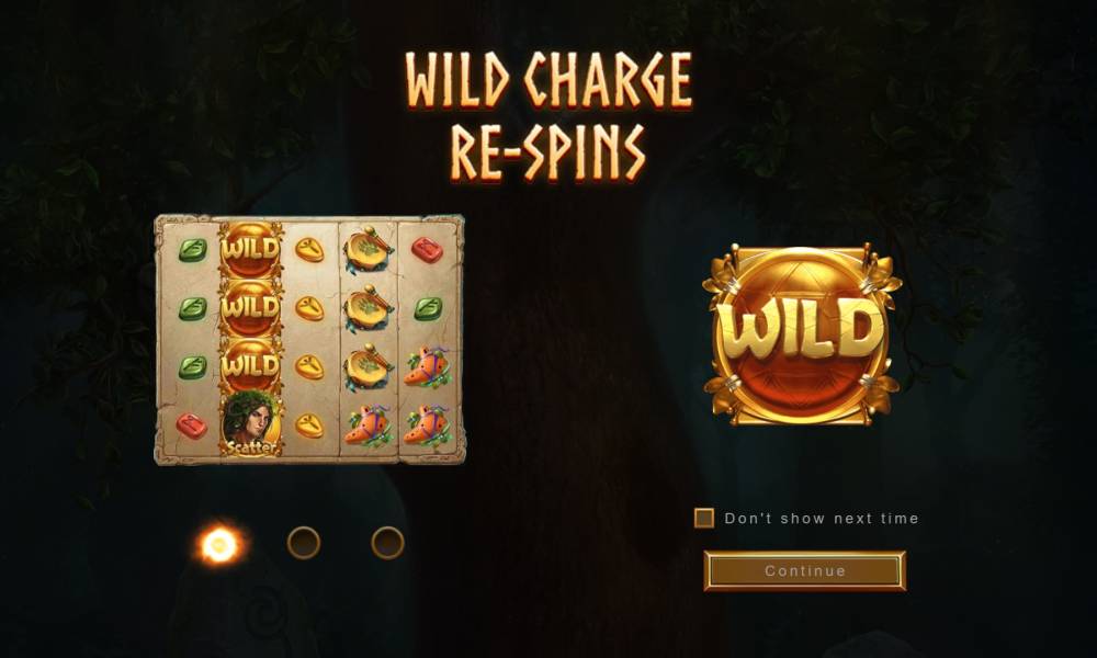 • Wild Charge & Re-Spins – Если второй и третий барабаны полностью заполняются символами Wild, и в одной из колонок появляется Scatter, начинаются респины. Скаттер и джокеры «залипают» на экране до конца раунда. Игра ведётся на деньги казино по неизменной ставке. Выплаты начисляются после каждого вращения. Wilds наделяются особыми возможностями.