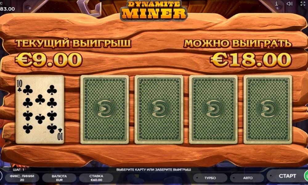 Риск-игра представлена в классическом формате: нужно сделать выбор 1 карты из 4 имеющихся так, чтобы она била карту дилера. Правильное угадывание позволяет удвоить выигрыш, в противном случае награда аннулируется. Игрокам разрешено сделать 10 попыток.
