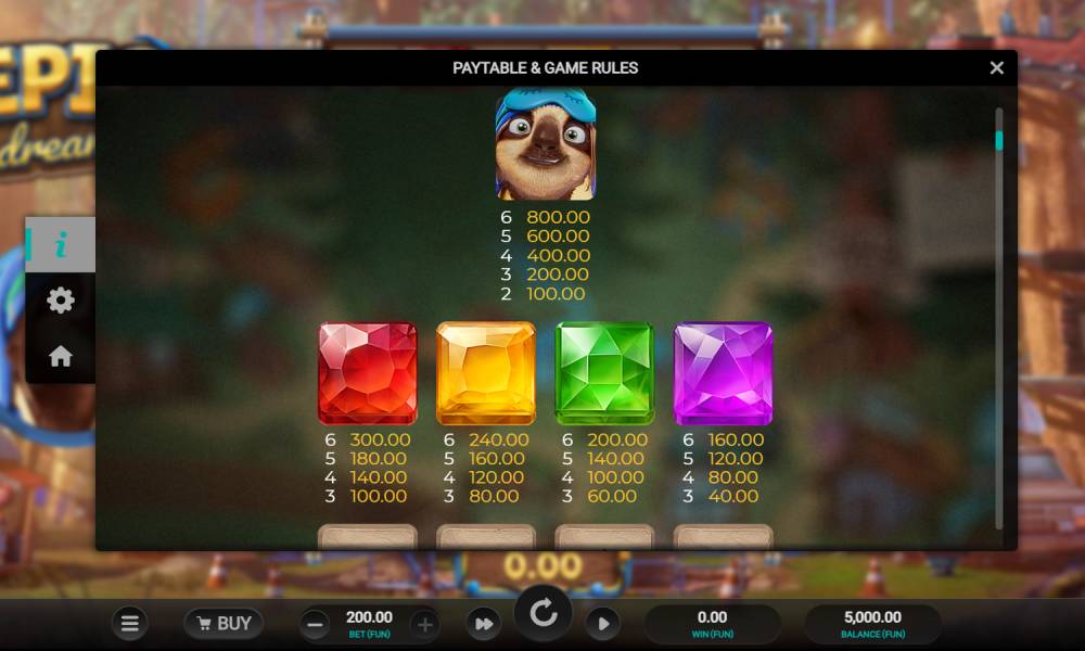 В Epic Dreams от Relax Gaming трудолюбивый ленивец занимается добычей ископаемых. А во фриспин-раундах (их есть 2 разных видов) он может либо отправиться за сокровищами под землю, либо наоборот начать строить леса, поднимаясь вверх. Слот получился необычным не только в плане тематики и дизайна, но и в плане механики: здесь задействованы каскады, похожие по принципу на игры типа «три в ряд». А один из фриспин-раундов похож на Tetris. Игра ведется на большом поле.