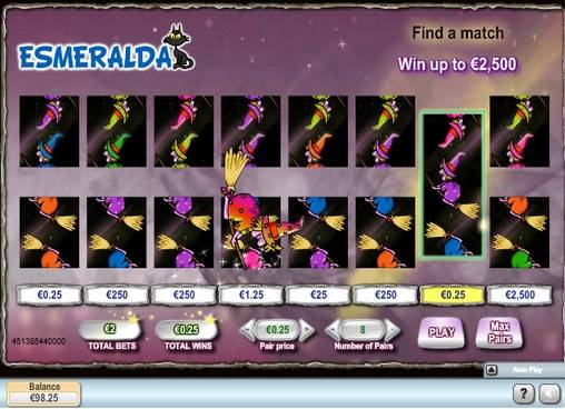 Цель игры в Esmeralda заключается в том, чтобы найти составить цельное изображение из двух карточек. Если две картинки совпадают, вы получаете рисунок с ведьмой Эсмеральдой, летящей на метле. Играть можно по одной – восьми парам карточек.