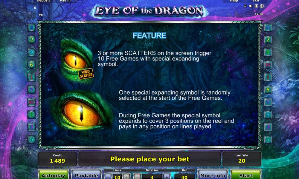 Как играть в автомат Eye of the Dragon? (Интерфейс)