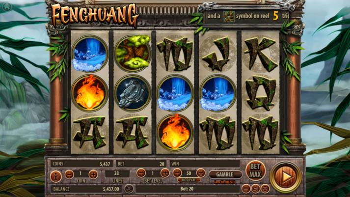 На экране слота Fenghuang появляются номиналы игральных карт, дерево, а также изображения, символизирующие четыре природных стихии: землю, воду, пламя и воздух.