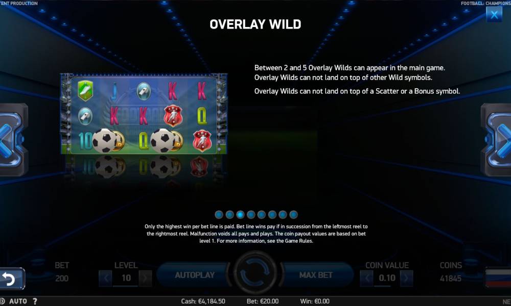 Если вы планируете использовать системы ставок в слоте Football: Champions Cup, нужно знать, что они не повышают теоретический возврат. Этот показатель в данном слоте составляет 96.82%. Волатильность игры - высокая, а значит слот выплачивает крупные выигрыши, но нечасто. Свойства слота: