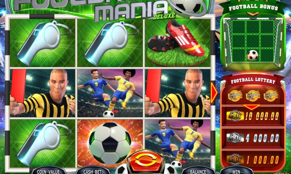 • В Football Mania Deluxe представлены стандартные изображения, особые символы, фри-спины с оригинальной системой запуска, риск-игра на удвоение, бонусная лотерея и дополнительные призы.