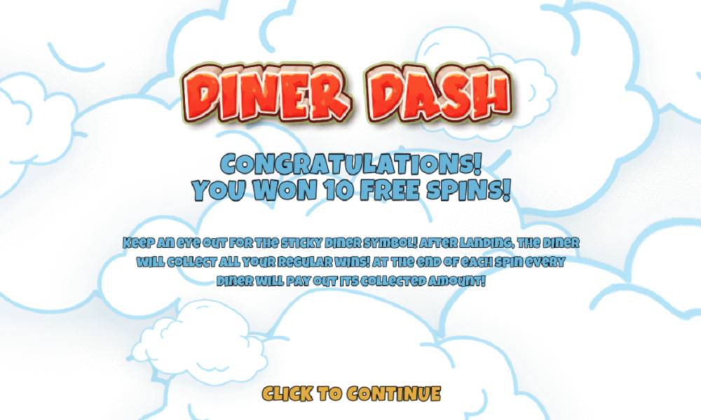 Diner Dash активируется при выпадении 4 символов Frank scatter и также предоставляет 10 бесплатных вращений с возможностью их увеличения при выпадении новых скаттеров. В этом бонусе появляется особый символ Diner scatter, который становится «липким» и остаётся на месте до конца бонусного раунда. Этот символ выполняет роль накопителя выигрышей: каждый раз, когда на барабанах появляется выигрышная комбинация, Diner scatter аккумулирует ее ценность. Таким образом, с каждым вращением сумма на этом символе может значительно увеличиваться, а накопленный приз выплачивается в конце бонусного раунда.