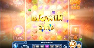 Игровое поле в Gemix 100 состоит из 7 барабанов, каждый из которых в 7 ячеек высотой. После выпадения символов комбинации учитываются по кластерной системе. Лавина обновляет знаки, постоянно добавляя новые. Диапазон ставки стандартный, от 0.1 до 100 евро. Фриспины отсутствуют, но есть некоторое подобие респинов, когда активируются знаки Wild. В зависимости от локации, все они имеют собственные функции. Фактически, бесплатные вращения тут и не требуются, так как за один раунд может сыграть огромное количество комбинаций. Реализованы бонусы сбора знаков и зачистки выделенных ячеек. Максимальный выигрыш составляет х25000 от ставки.