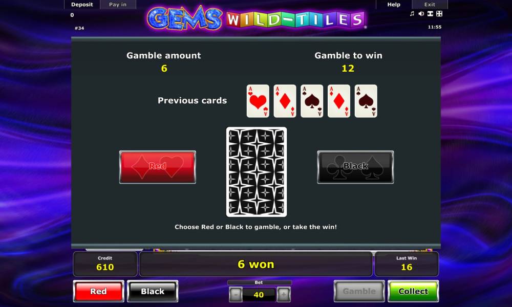 По завершению раунда можно сразу вывести деньги на счет или попытать счастья в игре на удвоение. Здесь предстоит наугад называть цвет карты. Правильный ответ увеличивает кредиты в два раза, а ошибка приводит к немедленному проигрышу суммы на кону. Можно действовать несколько раз подряд. О лимитах читайте в справке.