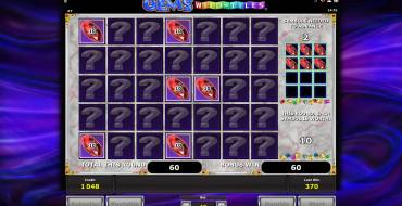 Игра перейдет на дополнительный экран, где возникнет поле с тридцатью пятью (7х5) ячейками. Все они содержат разные камни, скрытые от ваших глаз вопросительными знаками. Вам нужно будет наугад открыть одну из них, чтобы узнать, сколько одинаковых камней такого типа доступно в таблице. Каждый из них приносит какую-то выплату.